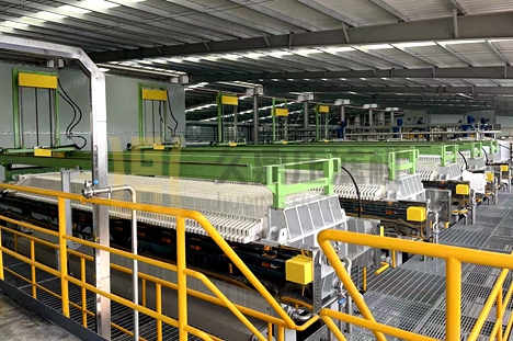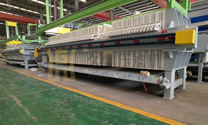 全自動水沖洗壓濾機是采用PLC控制原理制造的壓濾機,整機采用PLC控制,能使壓濾機實現自動進料、自動松開濾板、自動拉開濾板卸料、自動壓榨、自動清洗濾布等功能。并可以留有遠程控制接口,能實現遠程自動監測或操作控制。