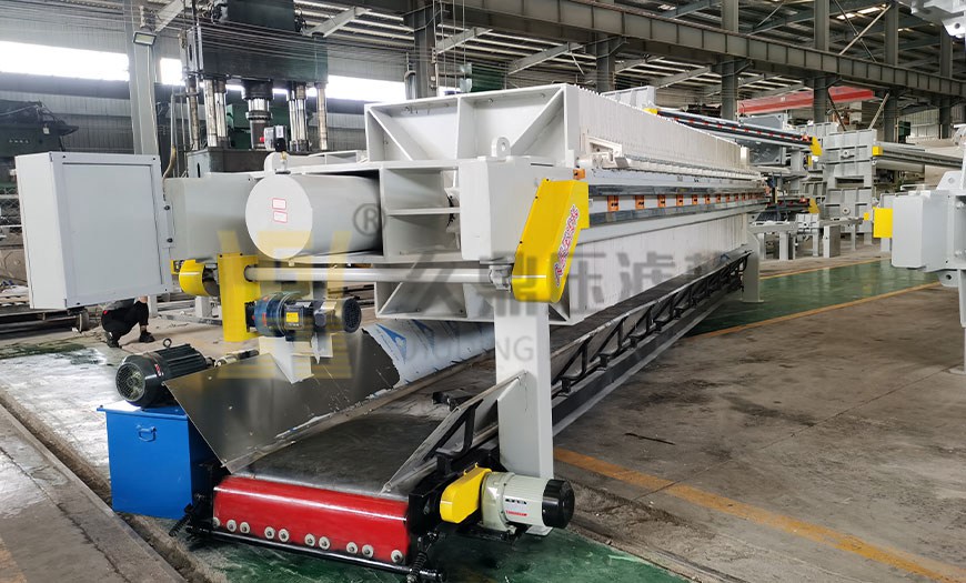 濾板材質:在壓濾機下方配置了皮帶輸送機,將壓濾機卸下的濾餅輸送至壓濾機的一端,可直接裝車或者送入噸袋內,提高工作效率